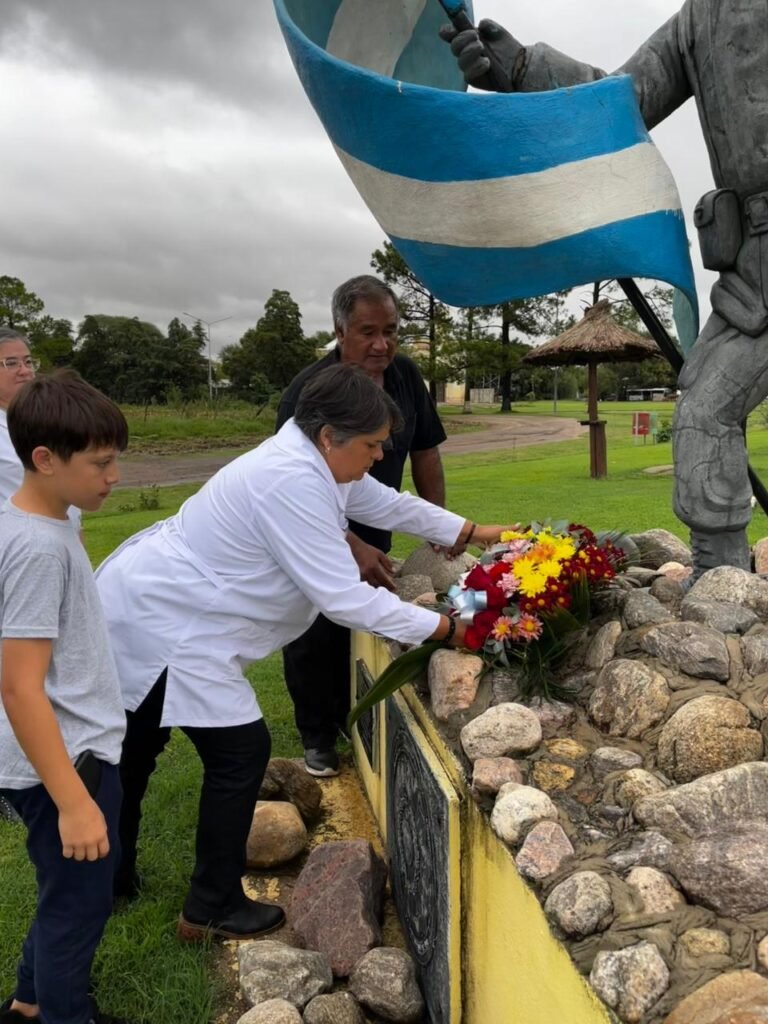 Tras el acto patrio, se realizó la colocación de una ofrenda floral en el monumento a los Héroes de Malvinas, en un gesto de memoria y respeto.