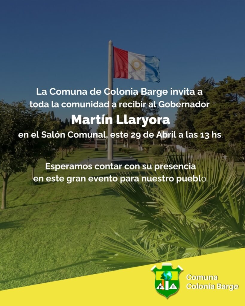 El día 29 de Abril, el Gobernador Martín Llaryora, visitará nuestra Comuna. Otro hito para la gestión de Sergio Rodríguez, hace 8 años que no visitaba nuestra comuna.